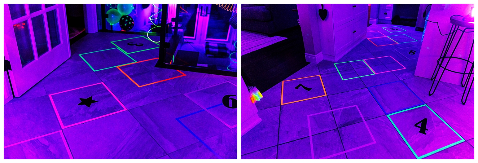 I really wanted the food and drinks to be super fun for this party. Though a bunch of trial and error and testing, I was able to make every single item glow (and taste good). A piece of advice, if you research how to make drinks/food glow on the internet the number one answer you will come across is to add tonic water to it. Warning, it tastes like trash. No matter how little you add, or how much you try to mask it with sugar, it still tastes awful. Don’t waste your time or money on tonic water.