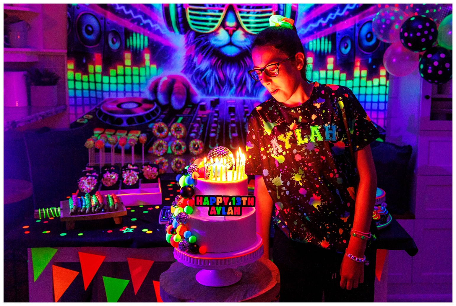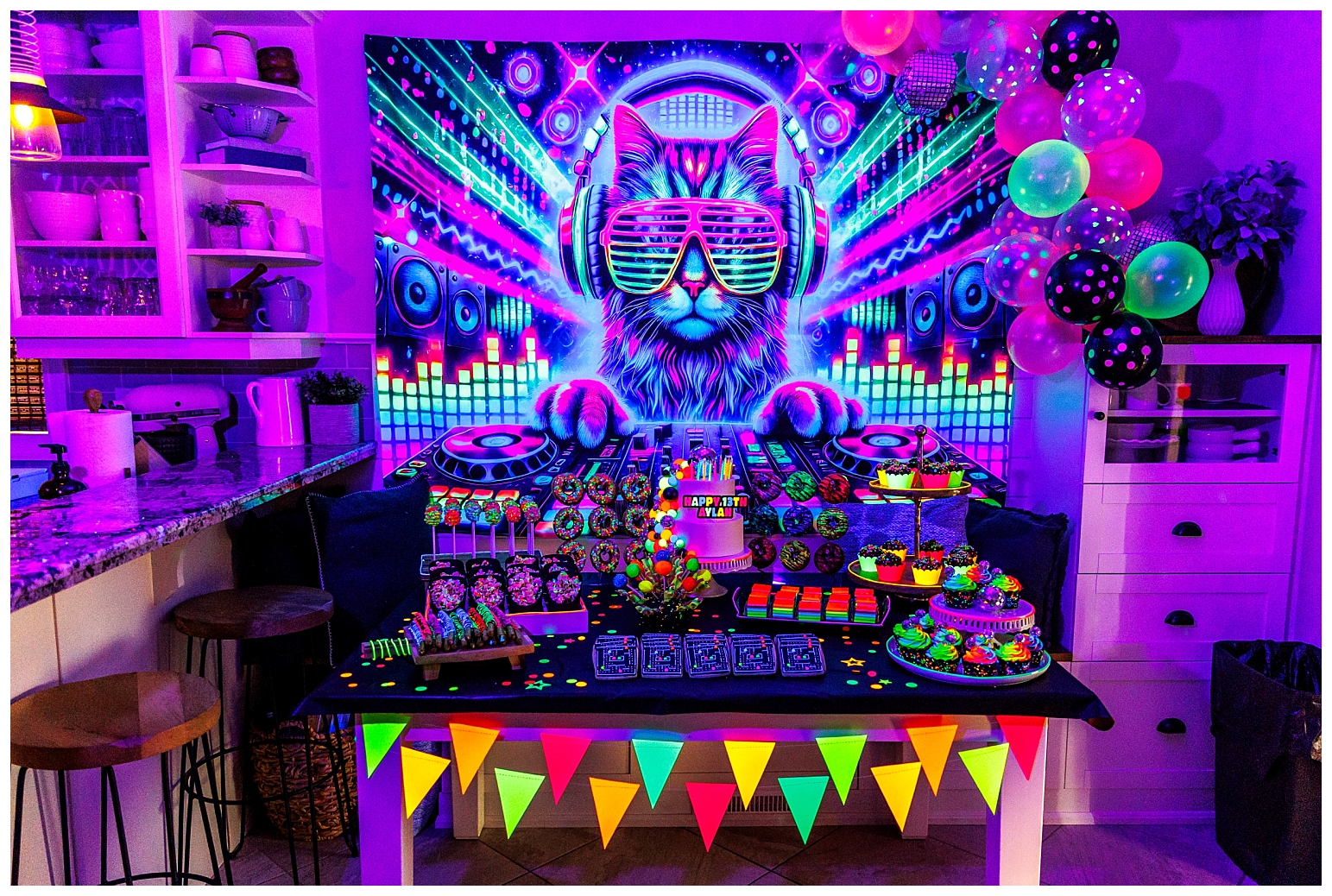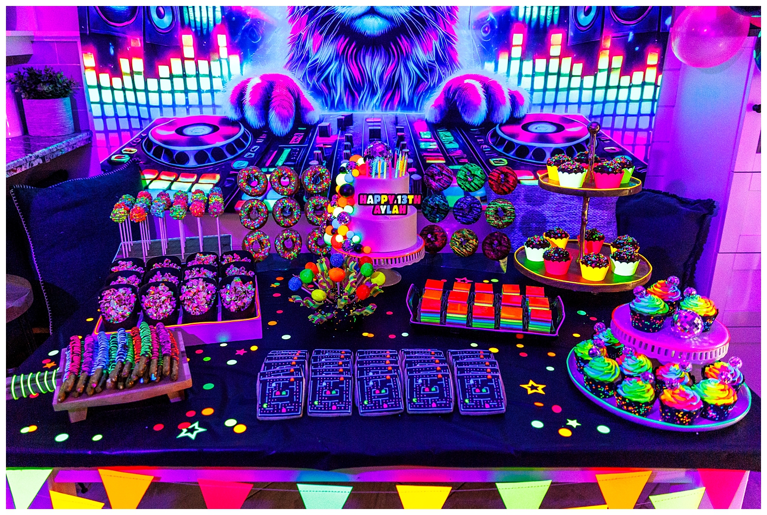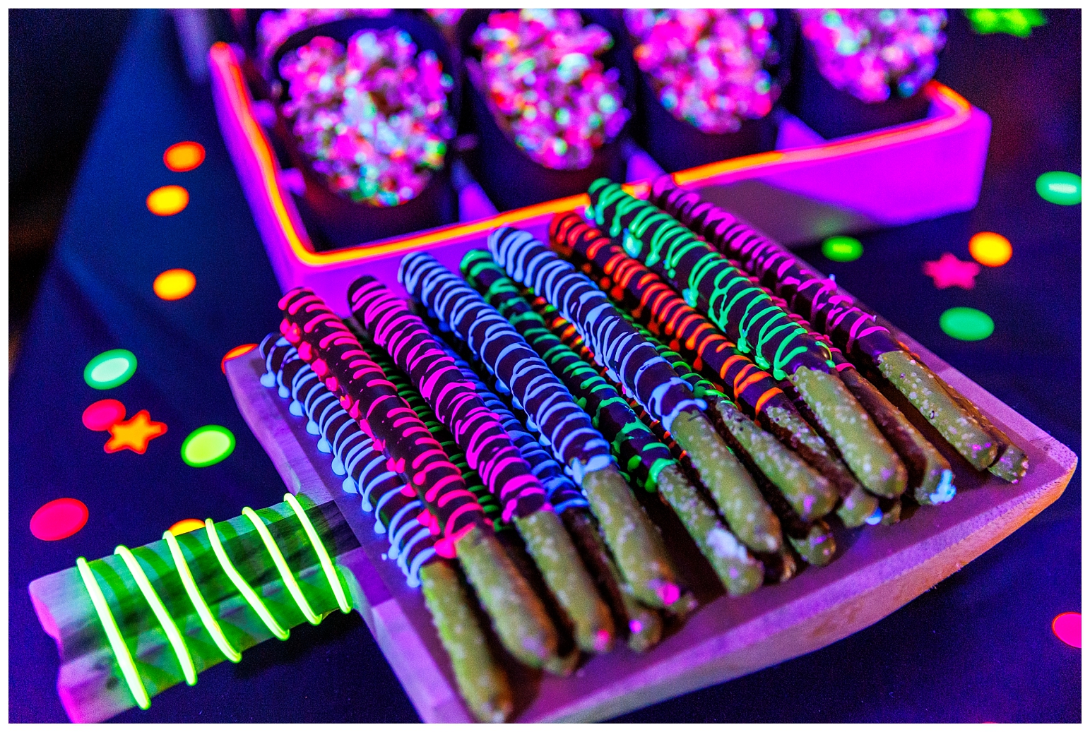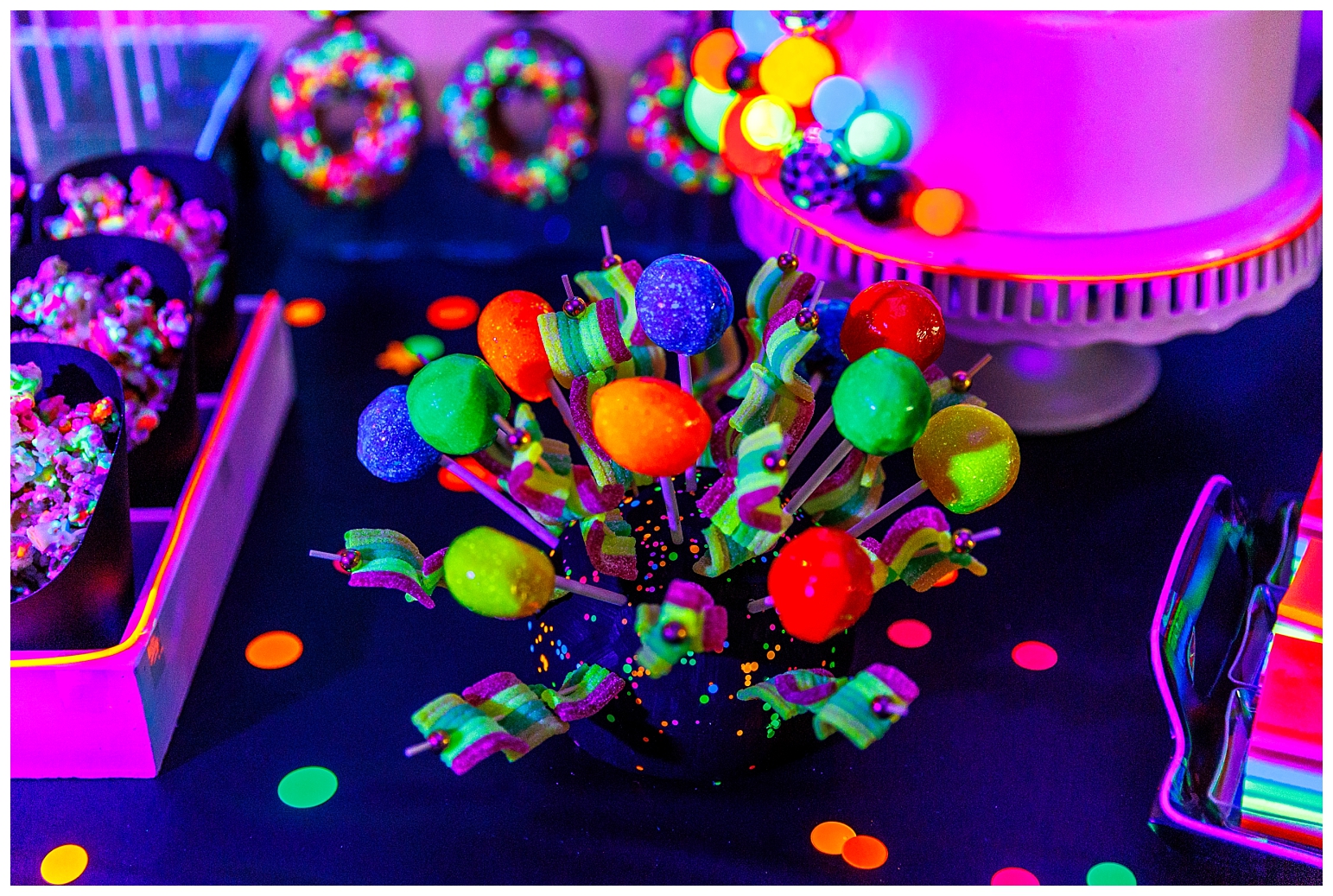 I must say that this party was equally the most challenging and most satisfying theme to do. In true Melissa fashion, it had to be other the top … which meant I had to make absolutely EVERYTHING glow!