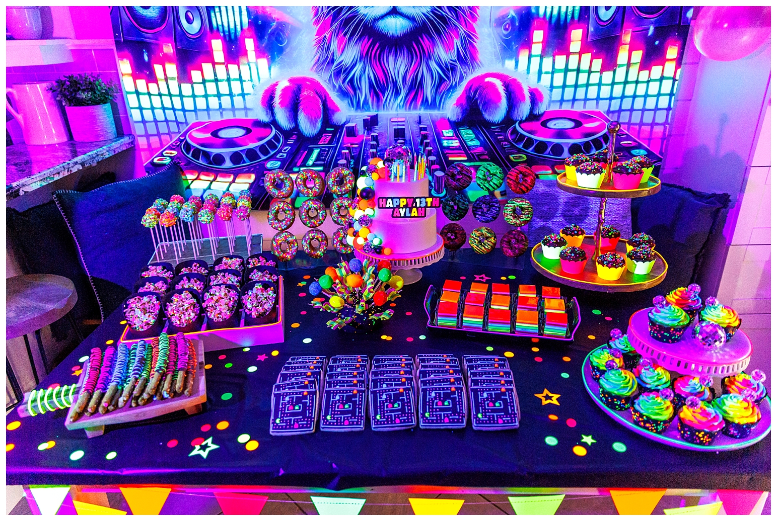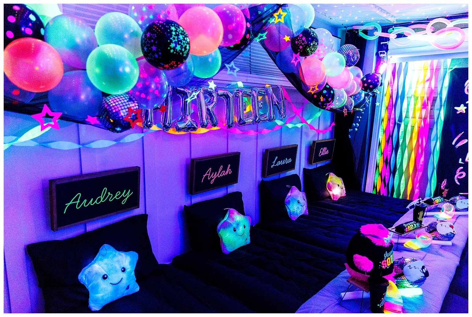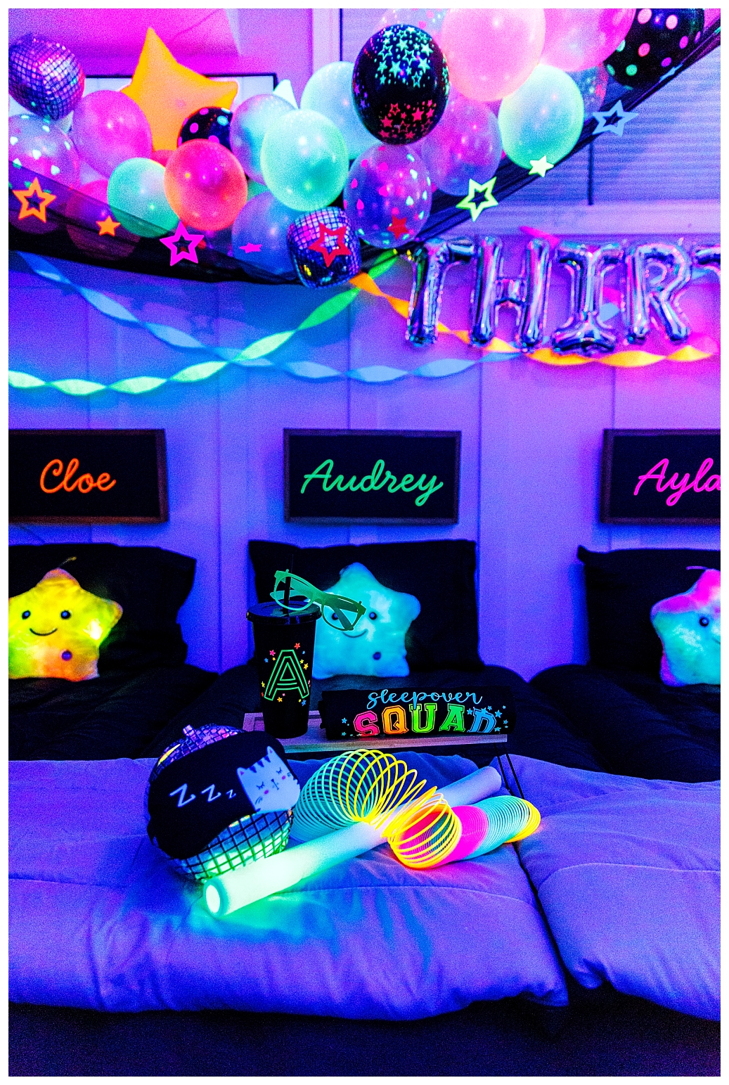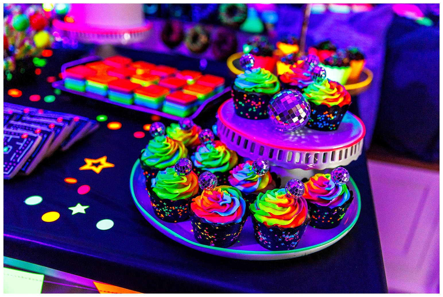 I must say that this party was equally the most challenging and most satisfying theme to do. In true Melissa fashion, it had to be other the top … which meant I had to make absolutely EVERYTHING glow!