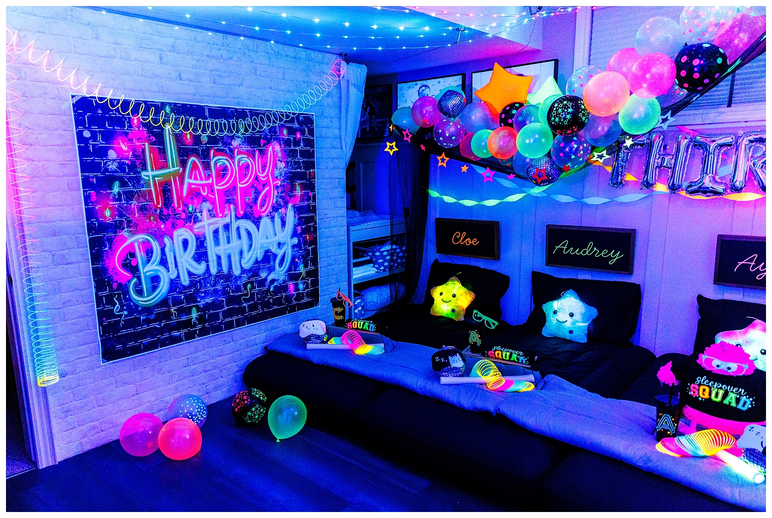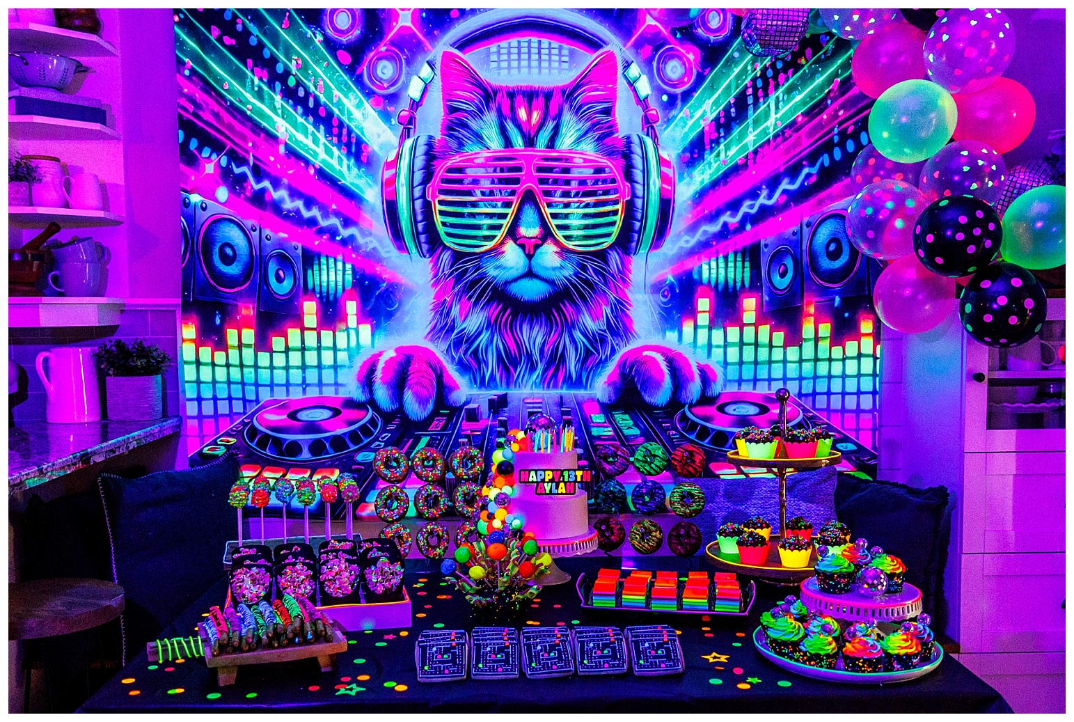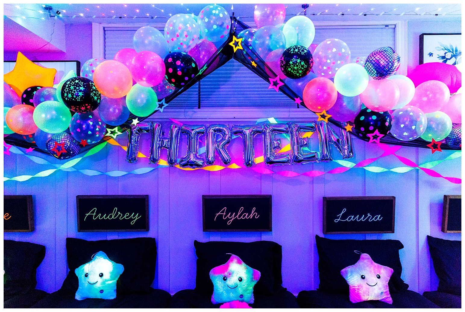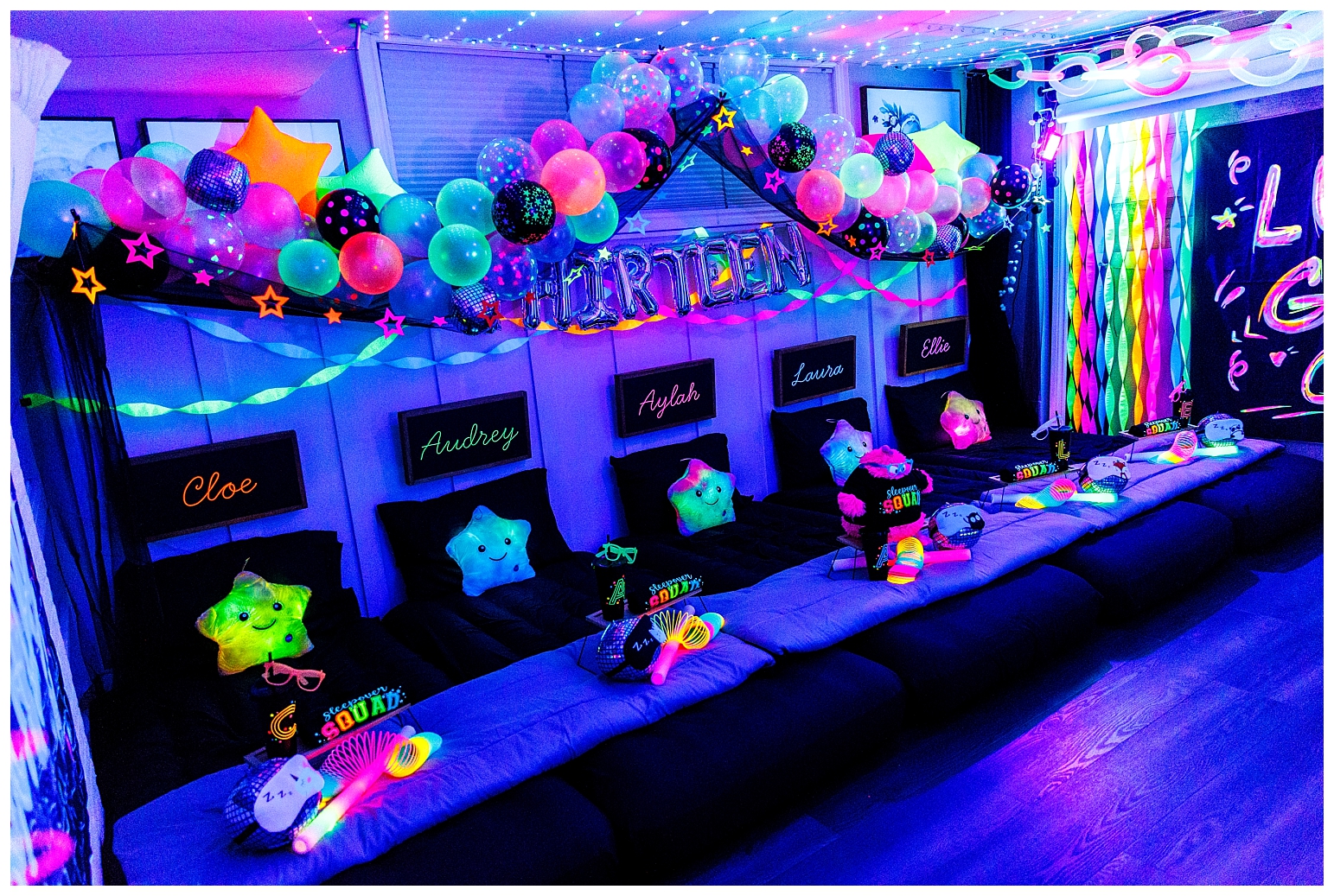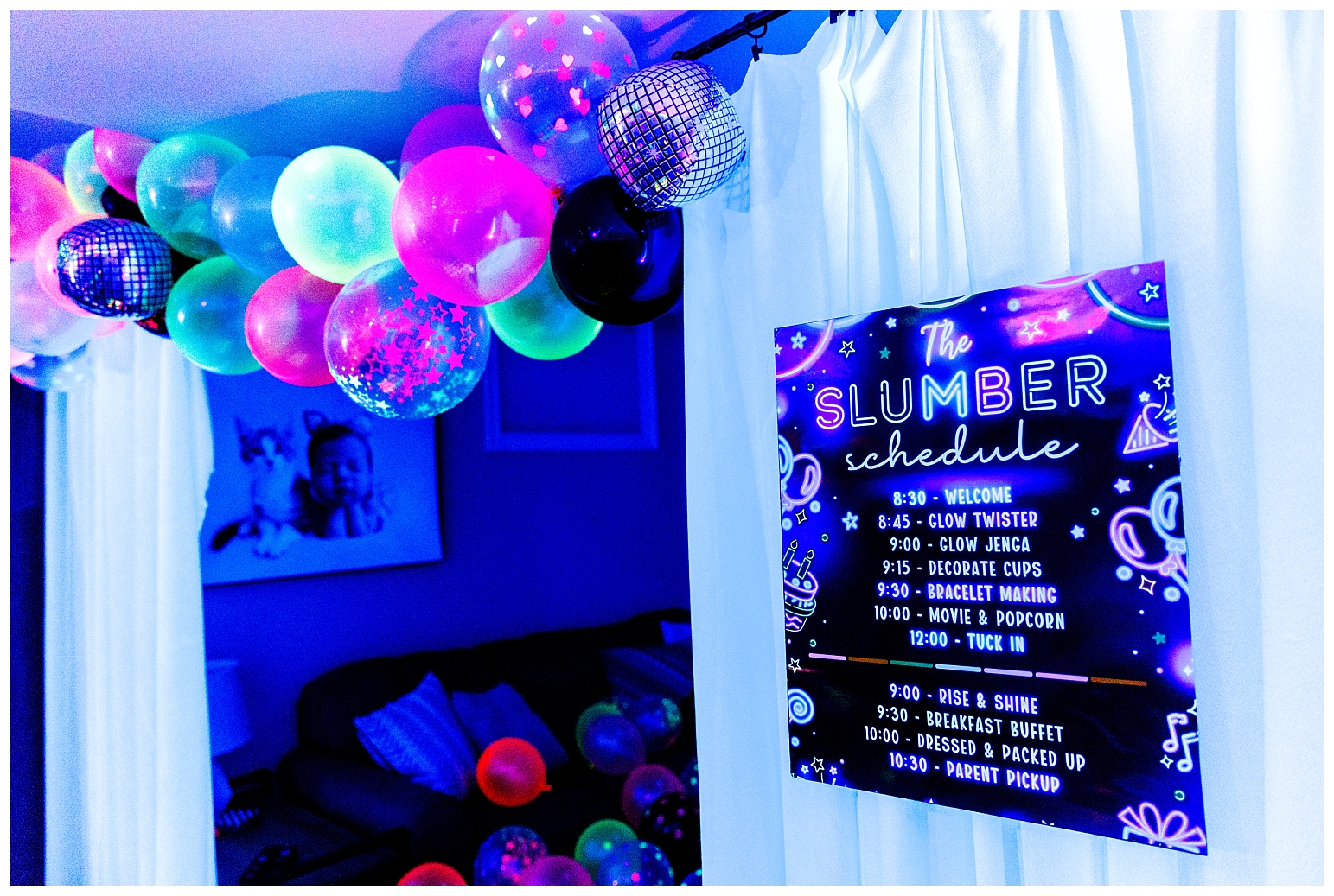 I must say that this party was equally the most challenging and most satisfying theme to do. In true Melissa fashion, it had to be other the top … which meant I had to make absolutely EVERYTHING glow!